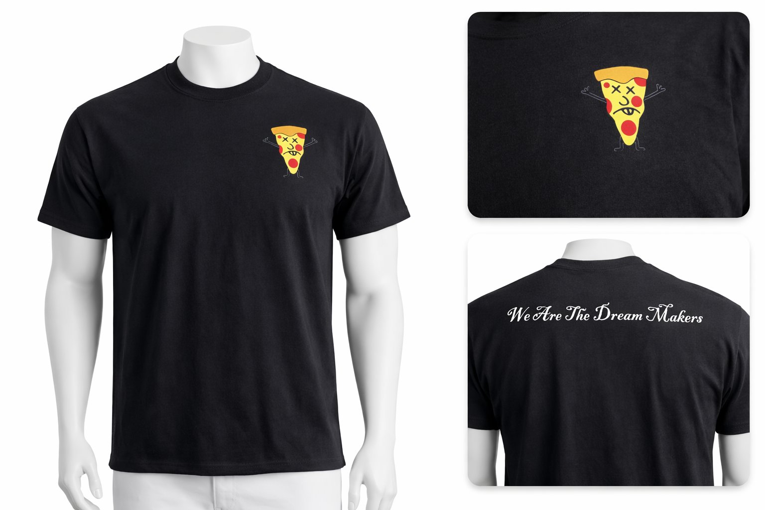 Black cotton tee, available in most sizes.
